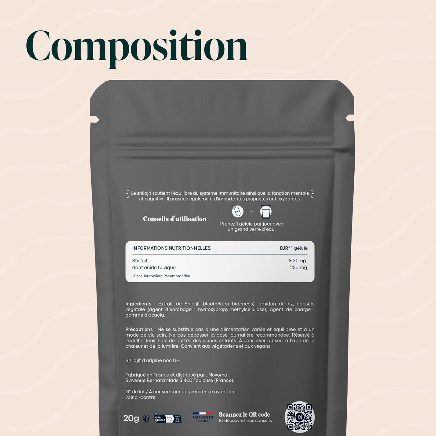 - 1 MOIS DE CURE. Chaque sachet contient 30 gélules végétales faciles à avaler. À raison d’une gélule par jour, notre complément alimentaire au Shilajit vous permet de faire 1 mois de cure.